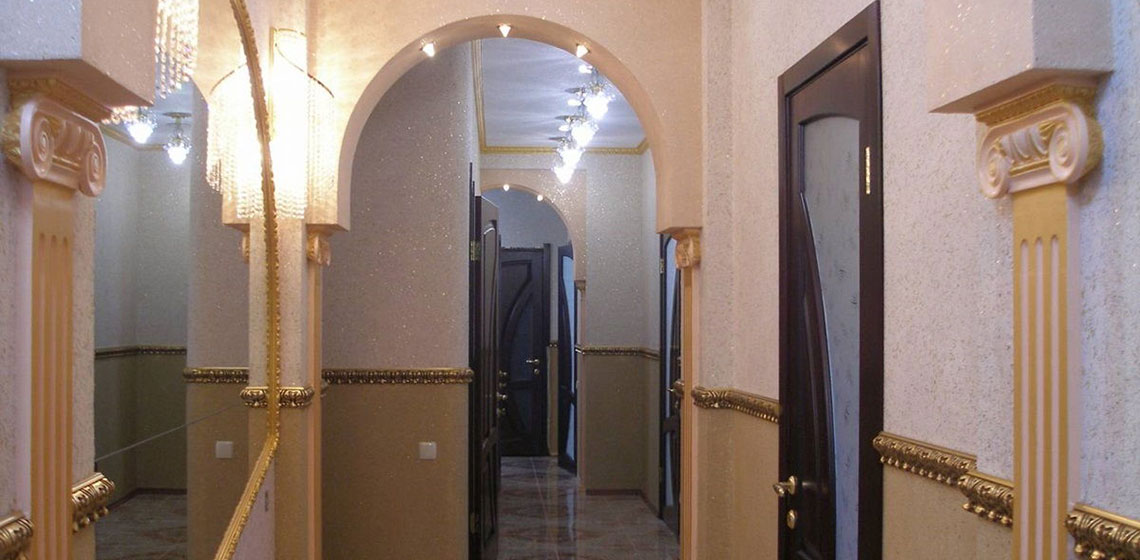 - Використання шпалер можливо в нестандартних ситуаціях, коли нерівність стін неможливо приховати. Шпалери використовуються під час декору колон, арок, ніш і виступів.
