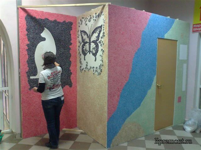 Фото целюлозних рідких шпалер (самий бюджетний варіант):