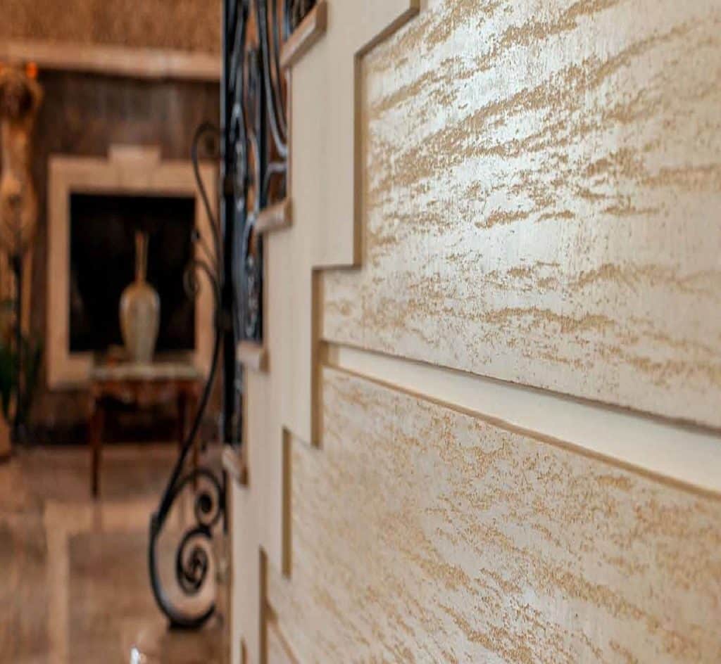 - Венеціанська штукатурка. Її використовують не так часто, але наносити можна на бетонні стіни або гіпсокартон.